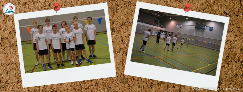Hier hingen doeken over het net, zodat je niet kon zien waar de tegenstander naar toe ging slaan en waar de shuttle terecht zou komen. - Baan 2: Boter-kaas-en-eieren